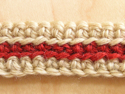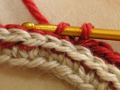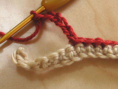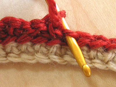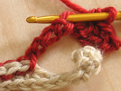 ★2の折り返し 細編みで折り返します。 ここをすくうと引き抜き編みの細編みと、きれいにつながります。