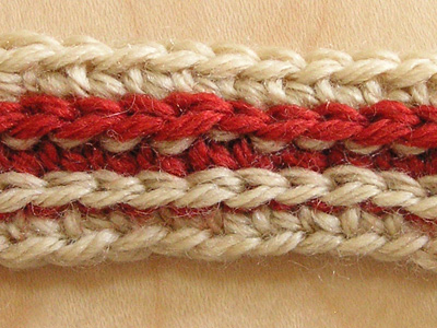 ★2を続ける 細編みのひもを一段ずつ重ねていくように編んでいきます。 好みの太さになるまで続けます。