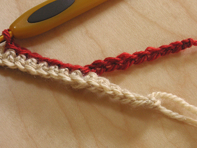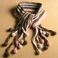 くさり編みと細編みだけで編んだミニマフラー。 かぎ針あみで作ります。これは五号の針を使ってます。 |