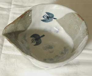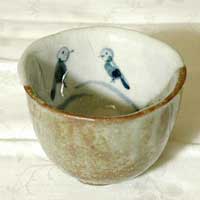 白化粧したところに呉須で鳥を描く。