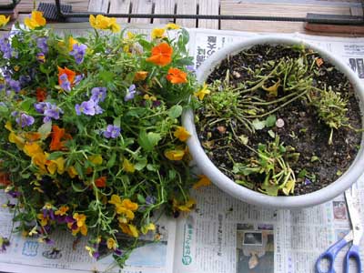 31日(火曜日)●雨が降ったりやんだり。洗濯かごを持って右往左往した午前中だったのが面白い。 ●ベランダの鉢数が増えたので、鉢の置き場所を入れ替えて場所を作る。 ●ビオラのプランターをひとつ刈り上げた。 ●きのう焼き上がったミニ鉢三個に、それぞれスミレ、イヌタデ、三時草を植えた。ケト土の使い方が理解できて面白かった。 30日(月曜日)●陶芸教室の日。 ●ミニ鉢に何を植えようか考えるのは面白い。 ●ヤマクジラは牛タンにそっくりだ、というのが本当の話であるとわかってもらえて面白かった。 ●通販の園芸カタログが届いた。時間を忘れ、ベランダの狭い園芸スペースを忘れ、カタログに見入ってしまうのが面白い。 ●色んなビオラがのっているのだが・・・ 苗の販売単位が1ダース、半ダースってのはどうなのだ。ベランダガーデナーは殆ど相手にされていないのがわかって面白い。しかし、欲しい苗がある〜。 ●先日、ストレッチ体操をやって脇腹を痛めた。今日は背中まで凝っている。 29日(日曜日)●息子のノートパソコンを買い出しにでた。 ●アパートに帰った息子から10分おきに電話が来る。 ●仕事でパソを使っているはずの夫は全く役に立たず。 ●わたしも娘も体重増加。 ●昼寝で幸せな夢を見た。詳しくは覚えていなかったが、肉じゃがを食べるシーンだけ、はっきり覚えていた。 ●大学でセンター試験と2次試験の結果を開示してくれるらしい。成績順まで教えてくれるという。 ●大きなタネもついて、夏の休眠期に入ると思われたヒメヒオウギに、また花芽が上がってきた。ビオラも元気いっぱいで、申し訳なくて切り倒せない。 27日(金曜日)●pontaさんにもらったワイルドストロベリーの鉢植えの写真を撮ってみた。もちろんpontaさん作の器である。以前にもらった、小さなうずらをのせてみたら、素晴らしいコーディネート。 ●上の写真についてのpontaさんの意見は、 ●ラベンダーの植え替えをした。 ●ラベンダーの鉢植えの中に存在したはずの土は、量が半分以下になっていた。 ●ラベンダーを株分けして二つにした。友達にもらってもらう予定。取りに来てくれる日が待ち遠しいのが面白い。 ●挿し芽しておいたラベンダーも発根していた。姫オミナエシも発根していた。箱根ギクも発根していた。初恋草も発根していた。 ●ぐったりしているナデシコの土を半分入れ替えた。保険に挿し芽もしておく。 26日(木曜日)●陶芸教室に置いてある道具と土を整理した。 ●急きょ、土コネは中止。マーブル柄のミニ鉢を八個作ったのが面白かった。 ●いい加減なたたら作りでも、植木鉢ならオッケーなのが面白い。 ●先日買った腐葉土を混ぜた土からキノコ発生。 ●キノコ図鑑を買ってしまいそうなのが面白い。 ●pontaさんに押しつける鉢植えをどれにするか、pontaさんと話し合って面白かった。こうして互いのベランダが似たり寄ったりになっていくのだった。 ●ようやくユーカリの苗を植え替えた。 25日(水曜日)●陶芸教室へ行ったら、園芸話で盛り上がっていた。 ●みんなをけしかけて、植木鉢ブームを起こせそうなのが面白い。 ●千日小坊をググって見たら、花は秋から冬にかけて咲くと知った。 ●今日は乾燥したさわやかな一日だった。こういう日に削り作業をすると、気持ちよく削れて面白い。 ●挿し芽をした苗をいつ、挿し芽床からポリポットへ移植したらいいのか悩む。 ●近所の画材屋さんへ筆を買いに行った。店番猫が巨大に成長していて面白かった。オス猫はでかい! ●ユーカリ苗をおとといの夜に、ひっくり返してしまった。さすがにポリポットのままでは具合が悪い。早く植え替えなくては。 24日(火曜日)●pontaさん宅へ、シマススキ、ミズヒキ、ホタルブクロを届けに出かけたら、お土産に、千日小坊、ワイルドストロベリー、スズメノヤリ、ネジバナ、河原ナデシコ、ヒメシャクナゲをいただいたのが面白かった。 ●pontaさん宅では雨が上がっていたのに、たった十数キロ先の我が家ではどしゃ降りだったのが面白かった。 ●園芸本話と園芸自慢話を互いに披露し合って面白かった。盆栽ごっこも仲間がいると燃えるのである。 ●2人でホムセンへ行ったが、互いに必要なものの買い物だけで終わらせることができた。こんなことで、互いに偉かったと誉めあうのが面白い。 ●午前中、ちょっとだけ陶芸教室へ。 ●昨日の草盆栽ごっこ写真をプリントアウトして教室へ持って行ったら、またまた、みんなの闘魂に火をつけてしまったらしい。 23日(月曜日)●陶芸教室へ行った。 ●昨日は植え替え作業をしているうちに日が暮れてしまい、写真が撮れなかった。自作の鉢に京鹿の子を植えたのはこれです。 ●陶芸教室に行ったら、カツオブシムシをイメージ検索せよとの指令を受けたので、では、そちらはヤマクジラをググりなさいと返答したのが面白かった。 ●園芸自慢をすると、必ず自慢を返されるのが面白い。しかも、たいていはこちらが負けであ
