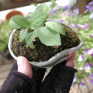 コゴミの鉢から生えてきた、タチツボスミレを小鉢に移植。