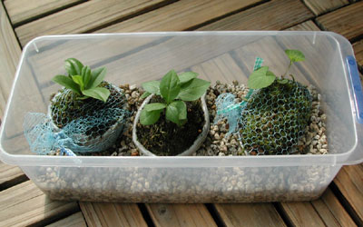 多分、イヌタデと思われる幼苗を三本植えてみた。
