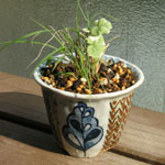 ●自作の鉢にオダマキを移植。もともとオダマキを入れるつもりだったので、オダマキの葉を描いてある。