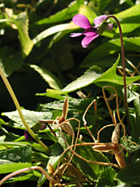種がはじけた後の殻と一緒に咲いてるのが面白い。