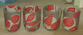 小皿5枚、湯飲み11個の絵付けと釉掛けをした。