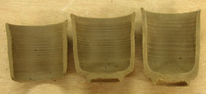 ●先週、ロクロで成形した八個の湯飲みを削る。三個を割ってみた。