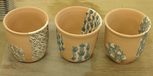 昨日始めた絵付けを完成、釉掛けする。