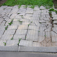 ![]() 冬の凍結でいい具合にばらけた敷石。 |