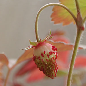 ワイルドストロベリーが、まだ頑張っている。冬に見つける赤い色は可愛い。