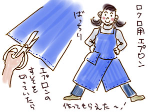 今まで切りっぱなし、汚れっぱなしのエプロンをしてたので見かねたらしい。