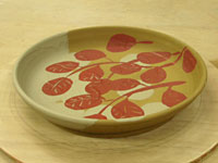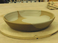 先週ひいた大きい浅鉢二個を削って、白化粧する。大きい方にベンガラで絵付けした。ロクロで大物をひくのは難しいが、削るのはもっと難しいと知って面白かった。指がつりそう。