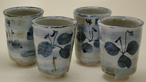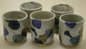 湯飲みは先に還元焼成で焼き上がったものと同じデザイン。