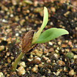 ●アケビの芽が出てきたが、種の殻が固くて難儀している様子。