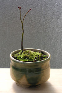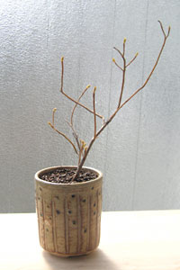 リョウブ。どんな植物なのか、イマイチ解っていない。昨年、従弟からもらったもの。自作鉢。