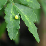●手伝いに出発する当日、ベランダのサンショウにアゲハのタマゴを見つけていた。