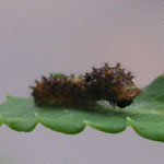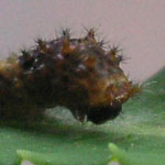 今、大、中、小、極小の4匹の幼虫がついていて、これが一番大きい小。