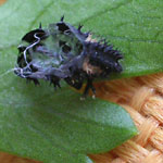 調べてみたら、スダジイの雄花らしい。散歩中のアオダイショウのしっぽ飾りにもなっていて面白かった。 ●イタリアンパセリの株元にアブラムシがわいて、困っていたら、救世主が来訪。テントウムシの幼虫が来てくれた。
