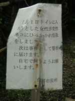 白河市がいろんな意味でマヌケに思われるので、もう撤去したらどうだろう。しかも、女性入り口、男性入り口の二カ所に立っている。