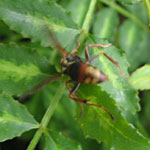 ●サンショの鉢植えにいかにも肉食風なハチがやってきた。