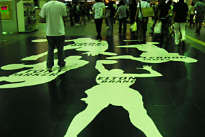 ●新都心の駅はトイレの前も世界バスケ仕立てで面白かった。