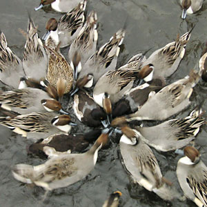 ●カモに「こめはぜ」を五回まいたら、自分の口にも一回。