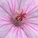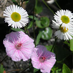 今年初のピンクのゲラニウム開花。白いのはエリゲロン。