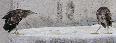どうも巣作りする場所を探している模様。ずうずうしいので、猫をベランダに出して見張りを任じようとしたが、うちの猫、最初から腰がひけてるのが面白い。