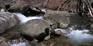 ●沢沿いの細道は遊歩道と言うには、ちと細く険しい。