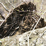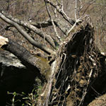 岩に貼り付いて根を張っていたのが、そのまま横倒しになっている。