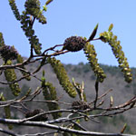 松ぼっくりに見えるのは前年の実。しっぽ状態が雄花。