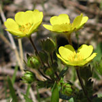 ●日だまりにはミツバツチグリ。黄色が鮮やか。