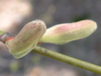●枝の先にカバー付きの芽。触るとモコモコして感触よし。