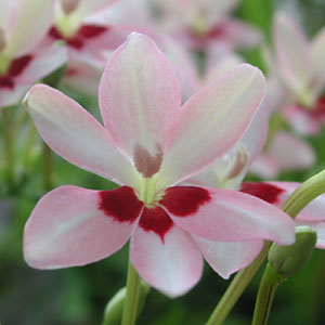 中央に点々の模様あり。茎の長さは15センチくらい。すっと伸びている。