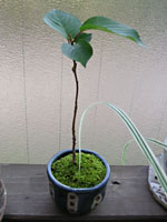 ●ミニ鉢に植えてあるケヤキ。ひょろひょろのヤシの木みたい。