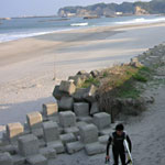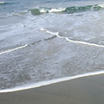 サーファー観察をしていると、足元に波がせまっていたりするので油断できない。