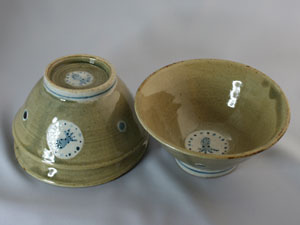 どちらも絵付けは、縞模様のアレンジ。困った時の縞模様なのが面白い。