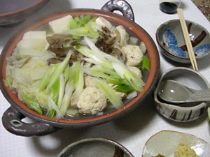 ●鶏だんご鍋。我が家は大食いなのでこれで二人分。三人分にはちょと足りない。