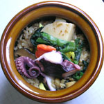 明石のタコ飯は、正確に言うと「明石のタコがのった飯」だったのが面白い。中の炊き込みご飯にはタコが入ってない。タコの揚げかまボールが埋まっている。