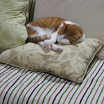 暮れに買ったクッションがお気に入りだが、まだ丸々とふくらんだクッション。寝入っているうちに転がり落ちるのが面白い。