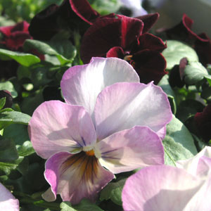 後ろの、エンジの濃色ビオラに付いていた。付いていたのは、まだこのビオラのみ。このエンジのフリフリ系ビオラ、アブラムシにとっては、よほど旨味が濃いのかもしれない。
