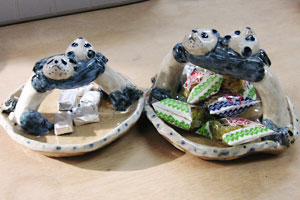 ●失敗したことだけで終わるのはしゃくにさわるので、残った時間を使って、パンダ皿を2個成形してきた。