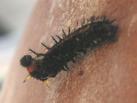 ●昼頃、五日前から動かなかったツマグロヒョウモンの幼虫に変化が。