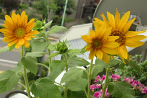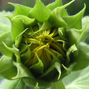 ●ミニひまわりのつぼみ。ようやく花びらが見えてきた。
