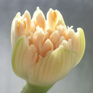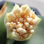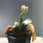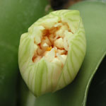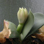 葉組(球根の中心部分に陽が当たるよう葉っぱを外側に整理すること)をしてみたら、もう蕾が準備されていた。