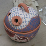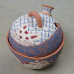 毛糸入れの素焼きがあがってきたので、小さい方の2個に絵付けして、釉掛けした。